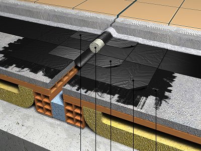 | QBF010 | Junta de dilatación en techo plano transitable, ventilado. Impermeabilización con láminas asfálticas | |