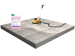 Líquido cristalizador, de color blanco, con pH de 2,5, para tratamiento superficial de cristalizado y abrillantado, en pisos de piedra natural o de terrazo.