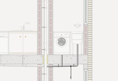 Red interior de desagüe, para galería con dotación para: tina de lavar, toma de desagüe para lavadora, realizada con tubo de PVC, serie B para la red de desagües. | ||