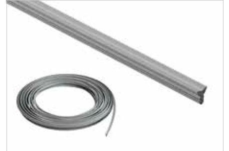 Perfil en T para juntas de partición en pisos de cerámica, de PVC, Schlüter-DILEX-FCS 90 "SCHLÜTER-SYSTEMS", de 9 mm de altura y 3,5 mm de anchura, con alas con perforaciones trapezoidales para su fijación y recubierto de CPE, suministrado en barras de 2,5 m de longitud.